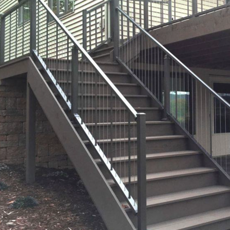 Railing is a type of fence made of one of more usually metal or wooden bars attached to posts, often along the edge of a path or at the side of stairs
